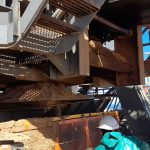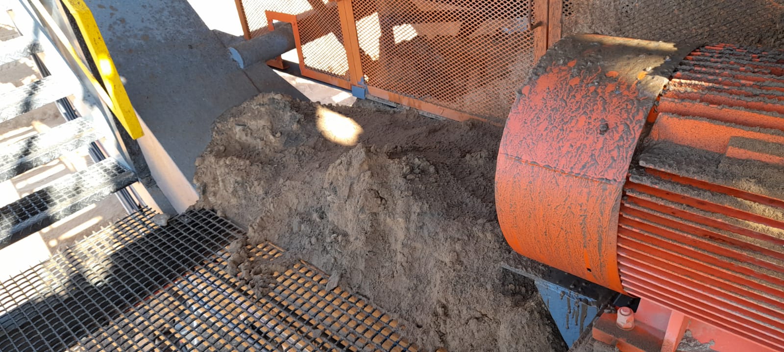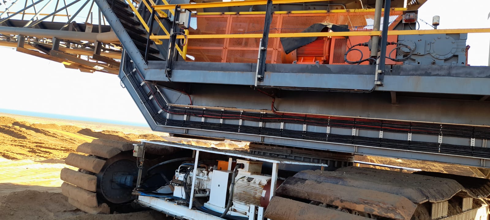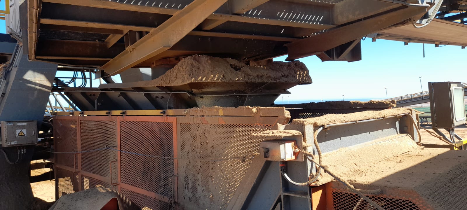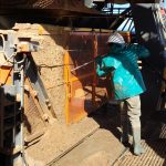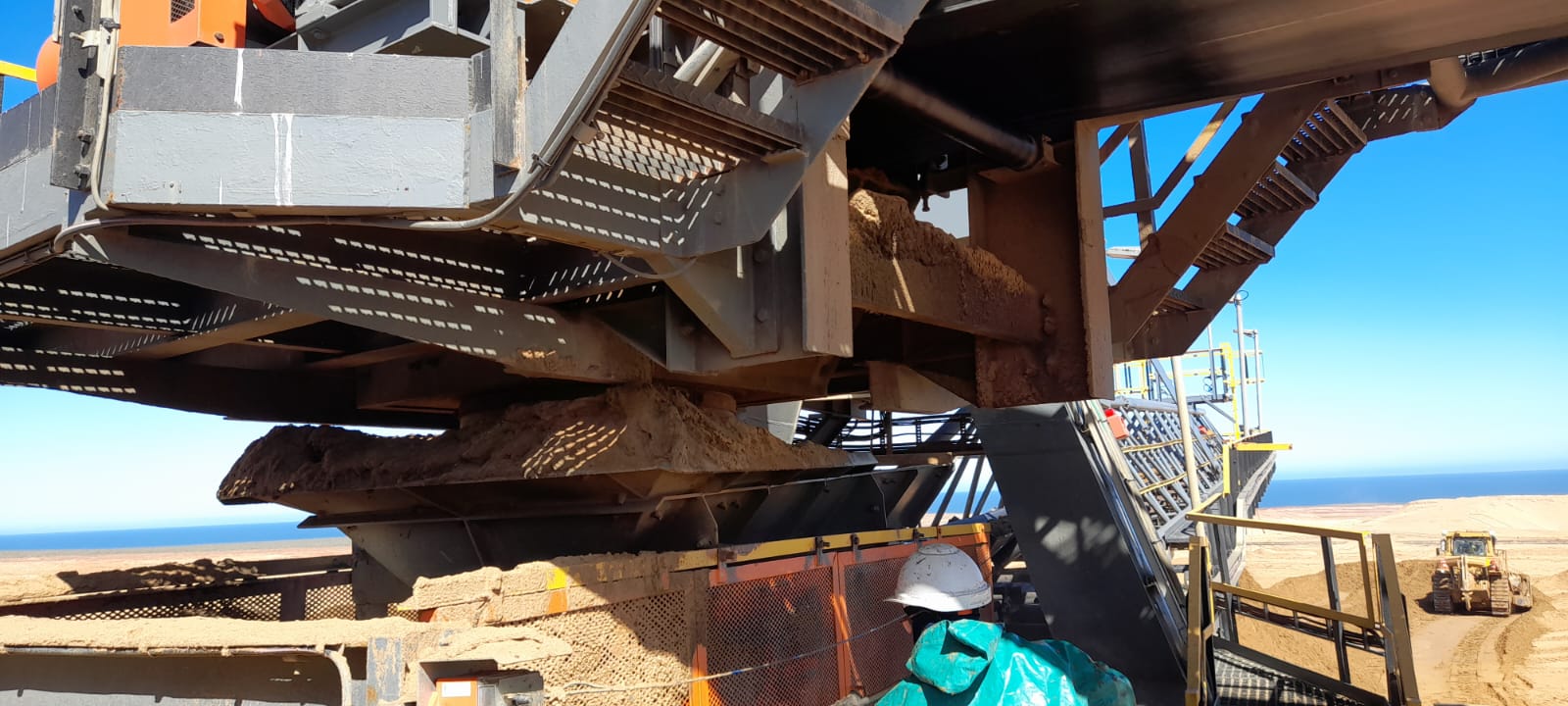 Cleaning of sand spillages under conveyor with High Pressure Spray Wash Machine while conveyor is in motion. Free idlers/rollers from running in sand and cause damages to equipment